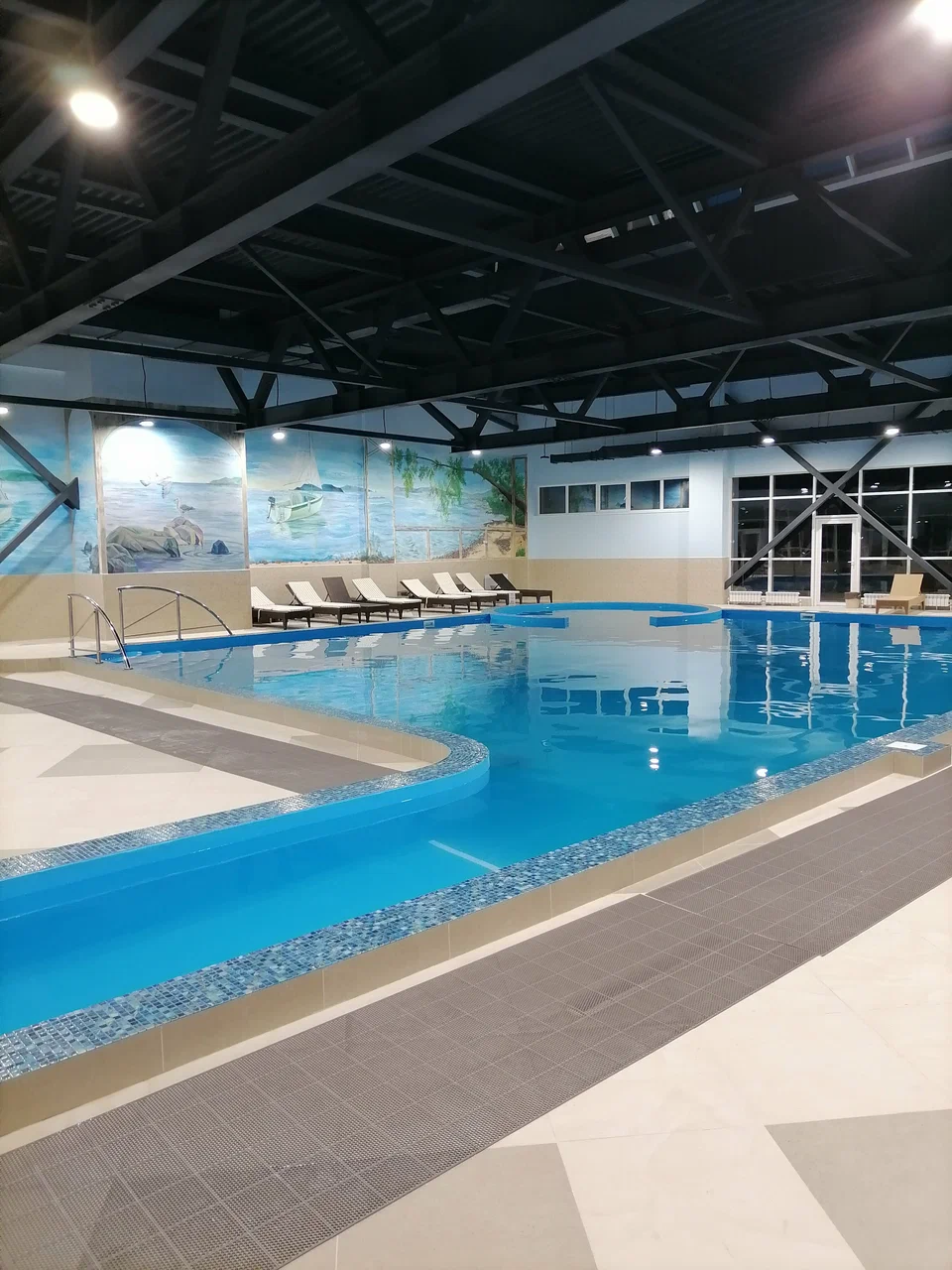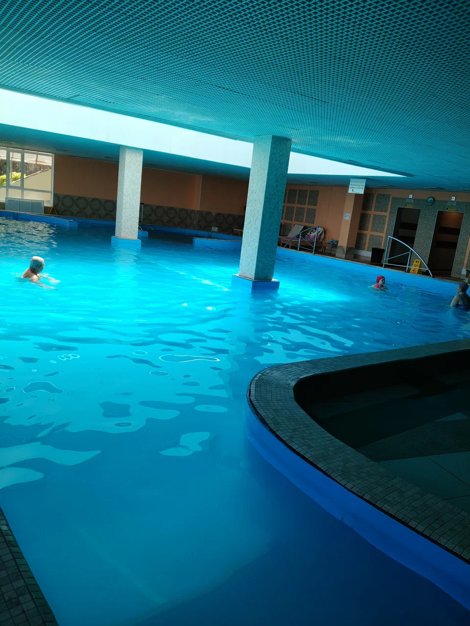 Демонтаж разрушенного защитного слоя бетона на плите перекрытия и зачистка арматуры от ржавчины. Покрытие очищенной арматуры антикорозионным составом. Усиление несущей способности ригельных балок перекрытия методом иньектирования эпоксидных смол в трещины, гидроизоляция бассейнов с тёплой морской водой, усиление колон и балок композитными материалами и углеволокном.